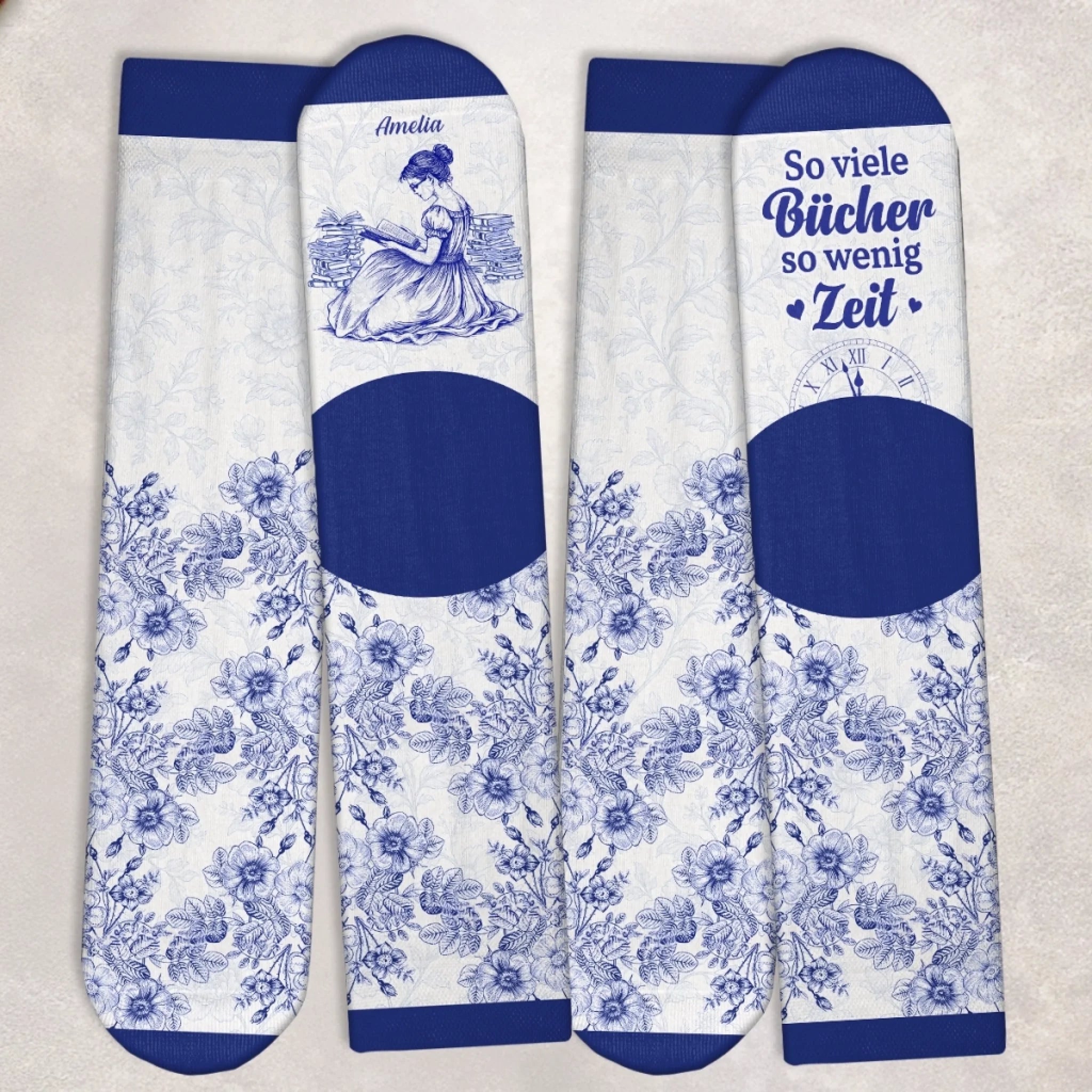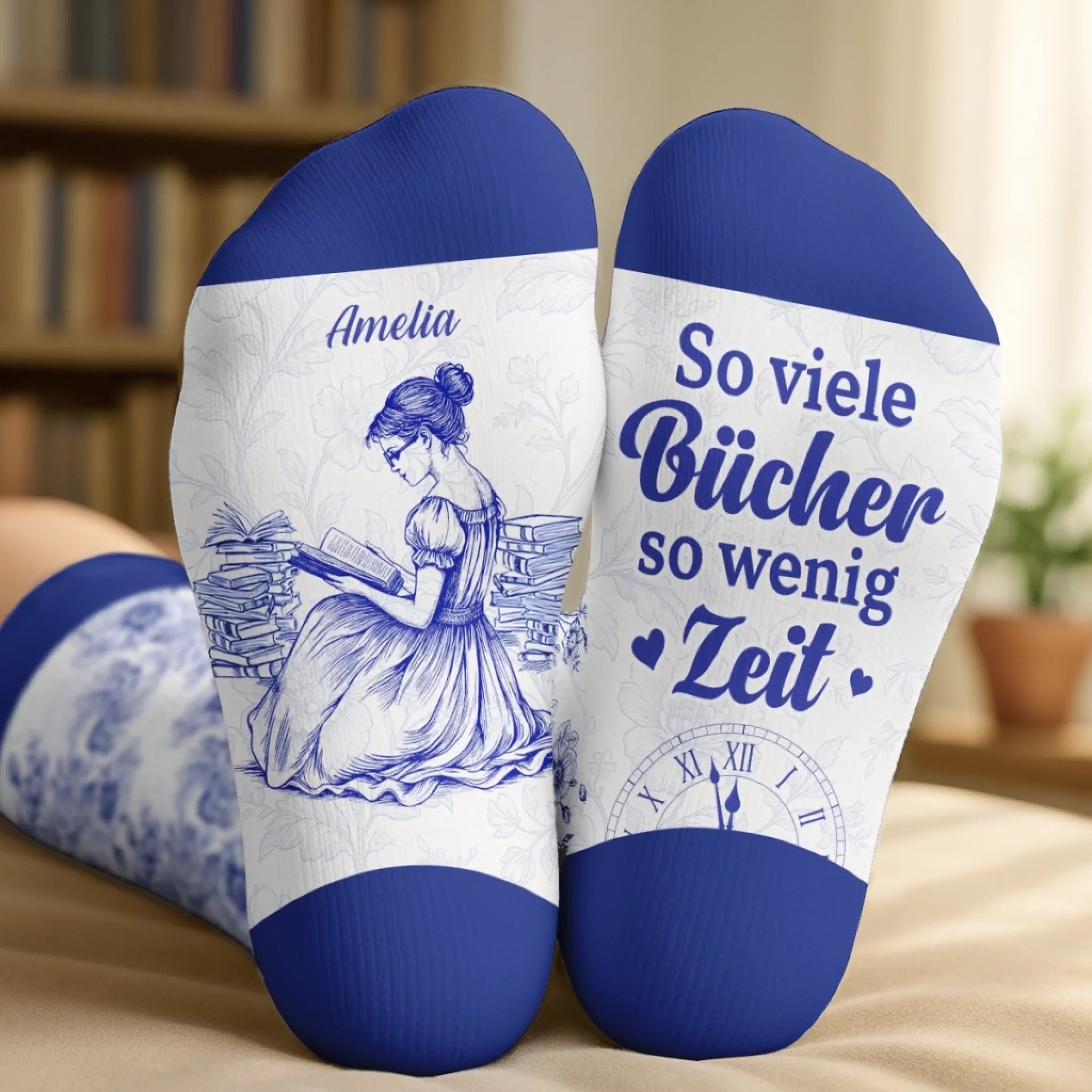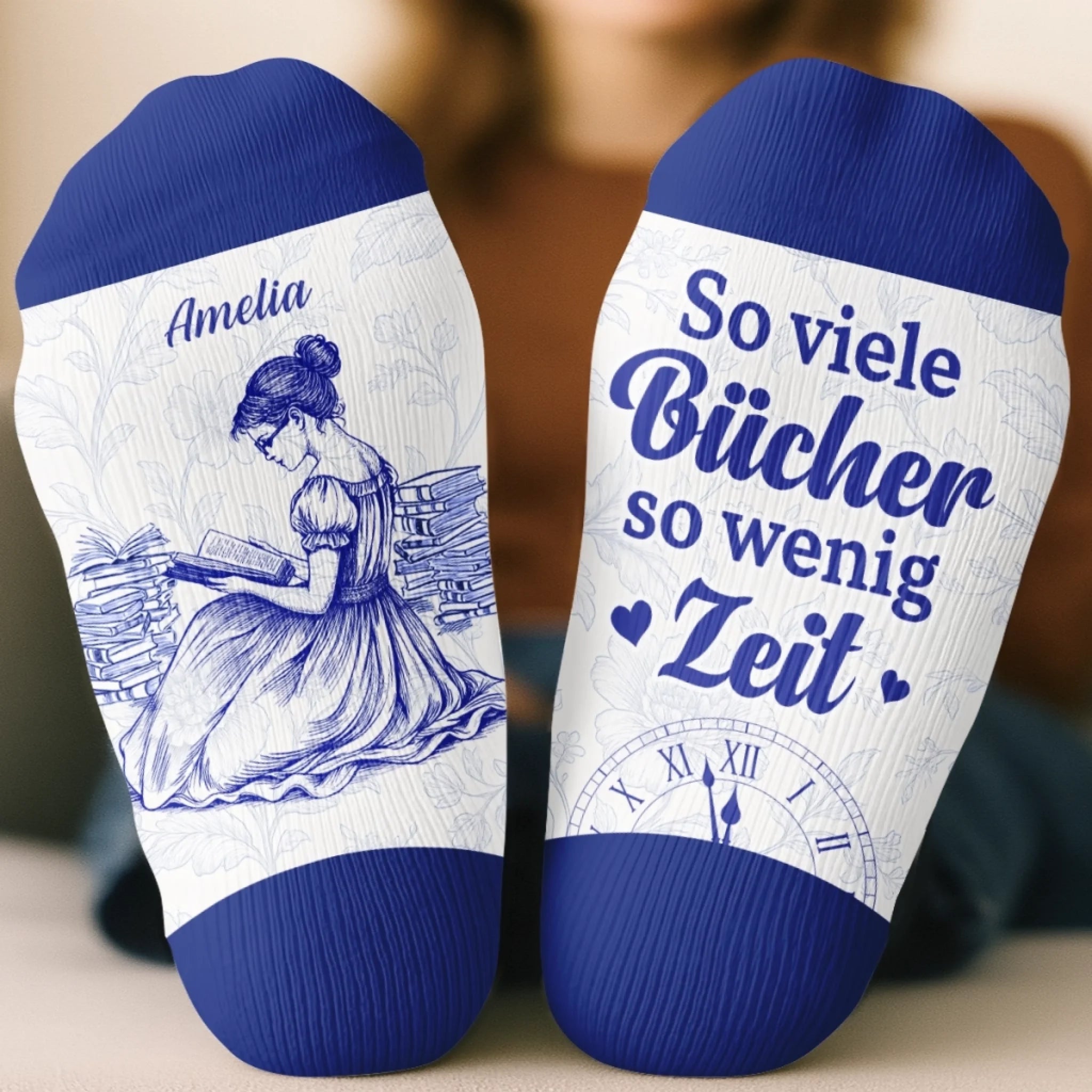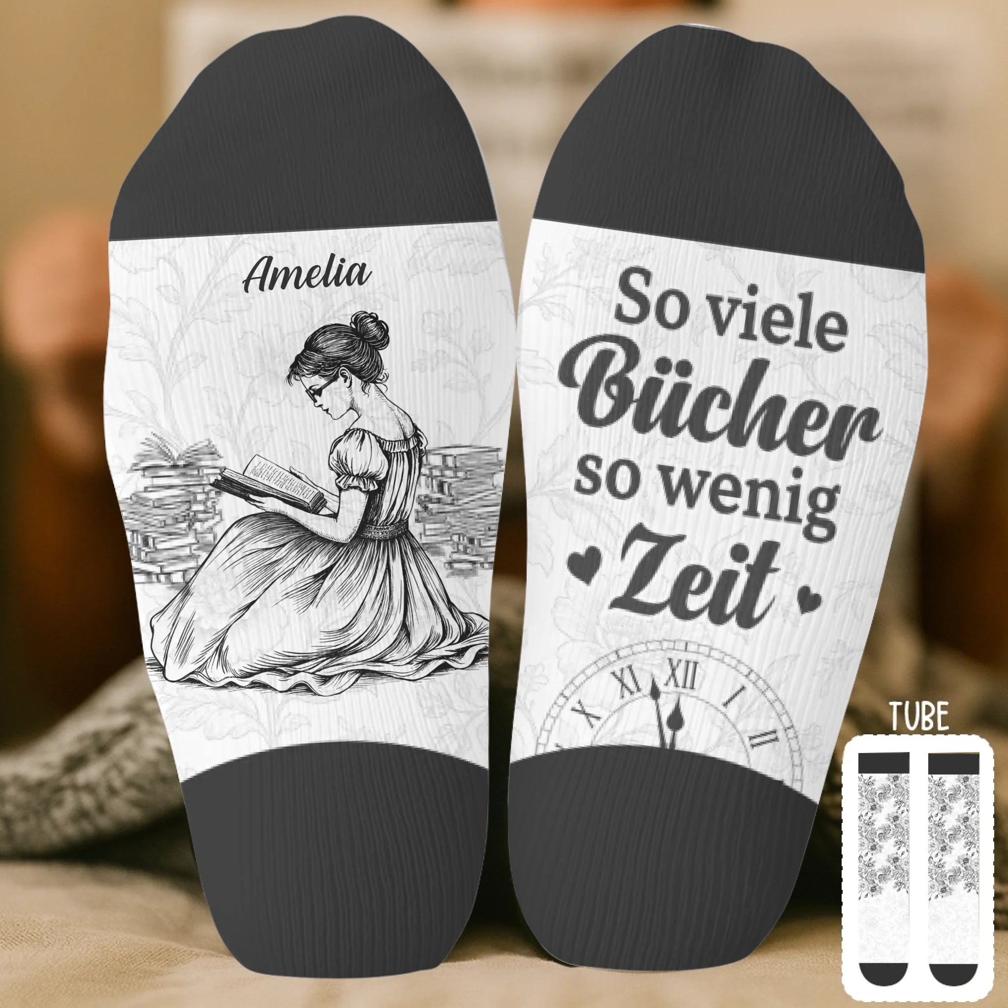 Personalisierte Crew-Socken – Personalisierte Buch-Geschenke für Bücherliebhaber, Leseratten und Vielleser - Nur Ein Mädchen, Das Süchtig Nach Büchern Ist