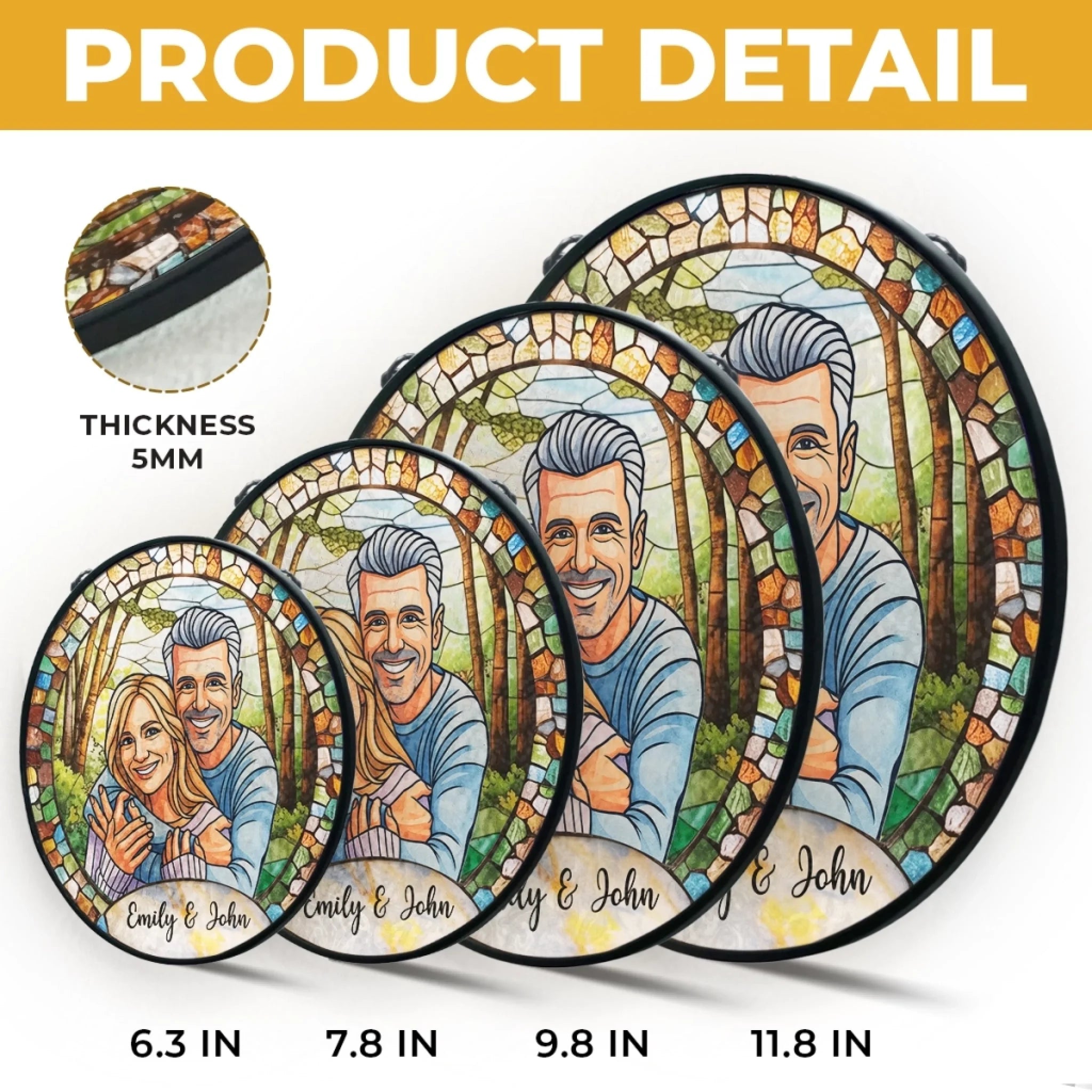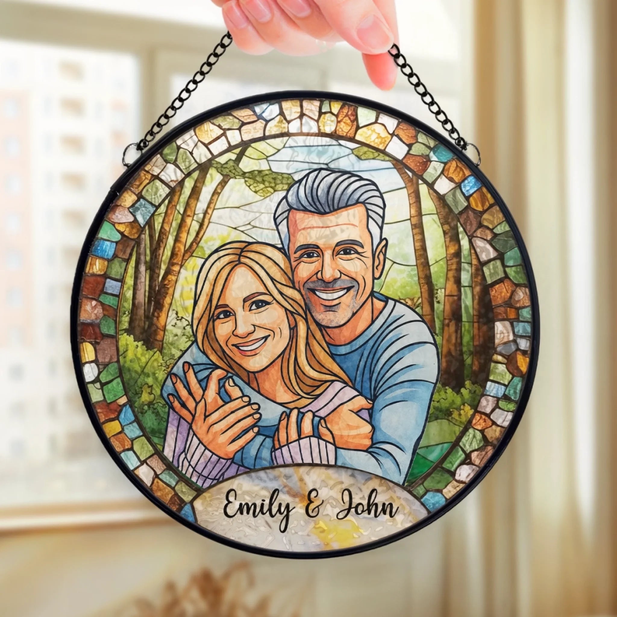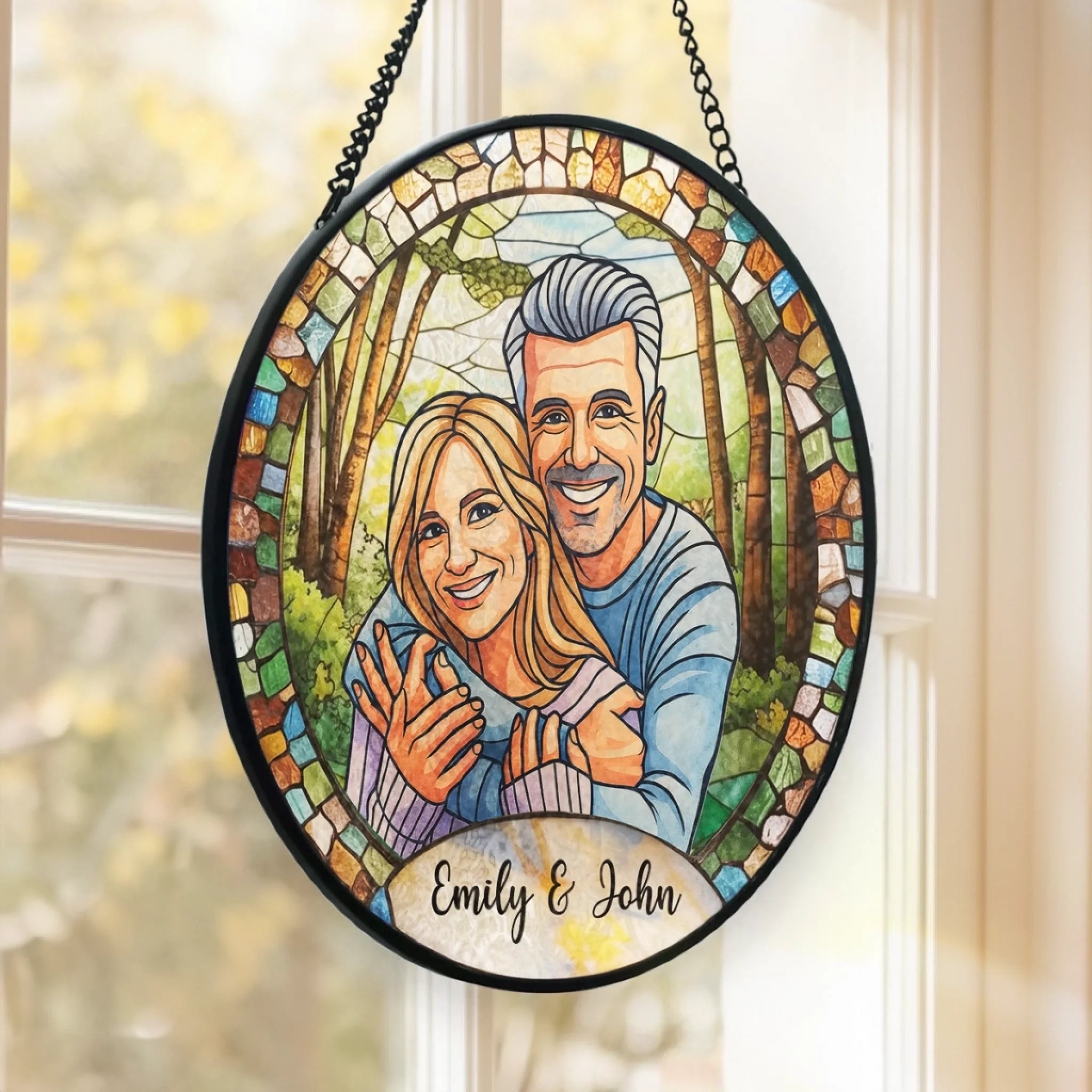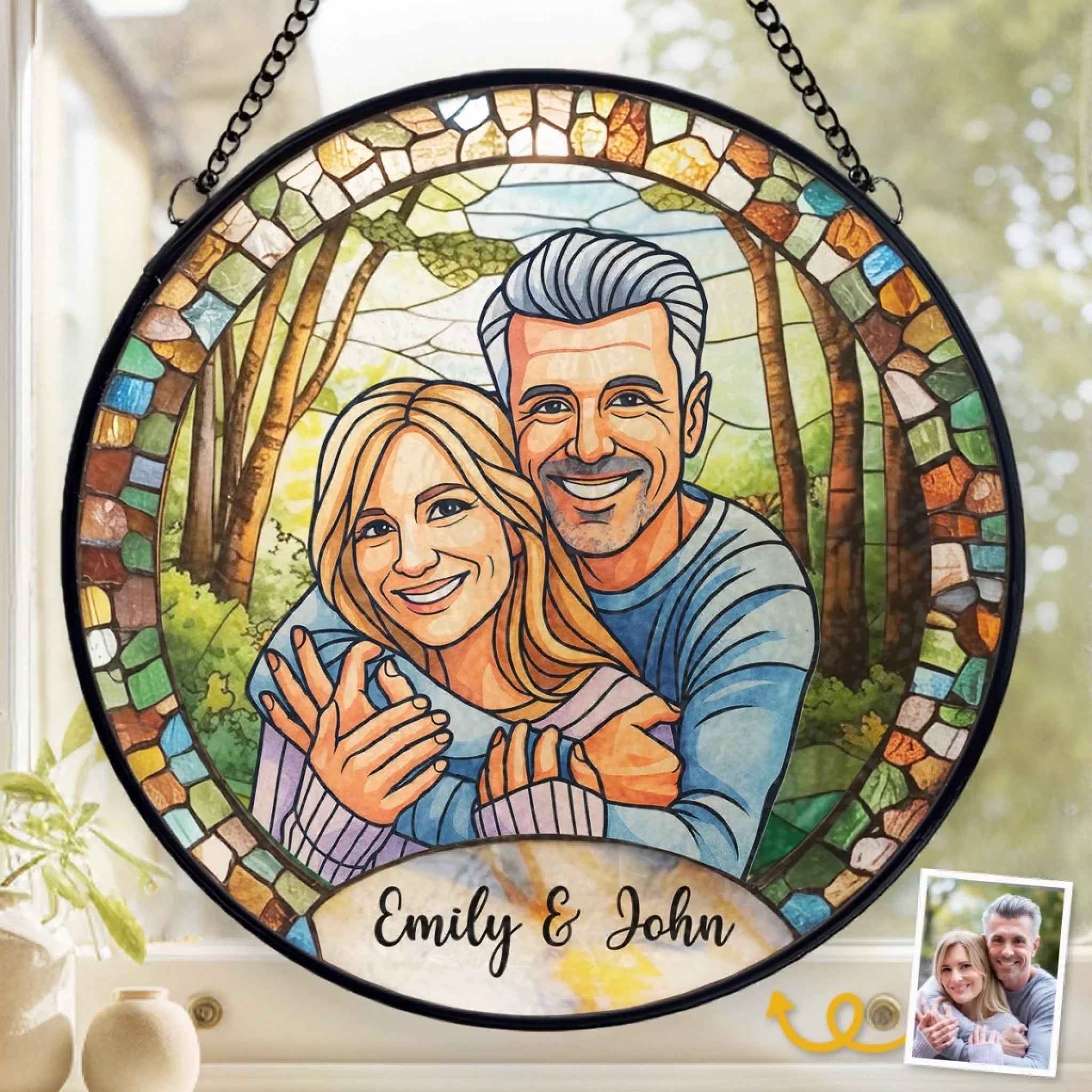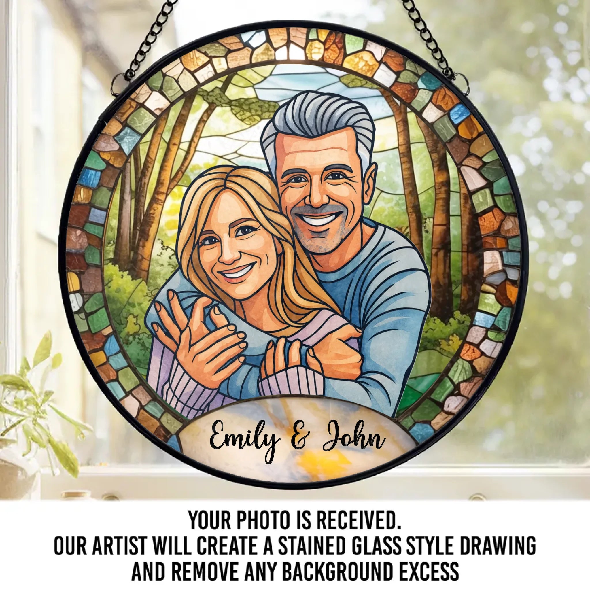 Benutzerdefinierter Foto-Sonnenfänger aus Buntglas zum Aufhängen am Fenster – Personalisierte Hochzeitsgeschenke zum Jahrestag für Mann und Frau, Sie und Ihn – Gemeinsam für immer gemalt