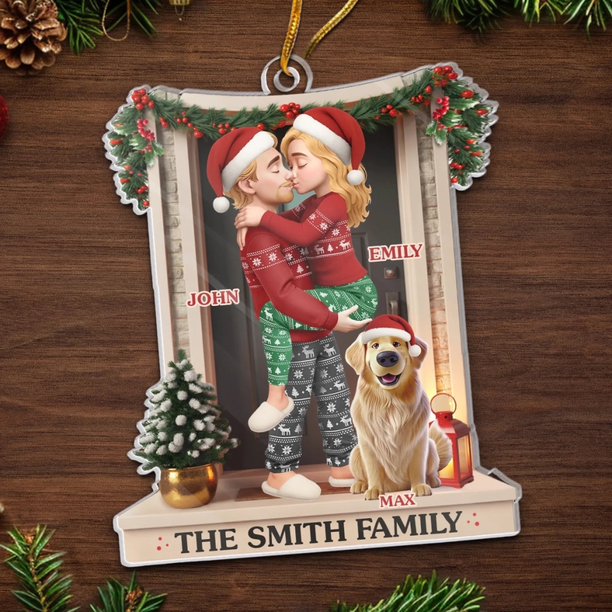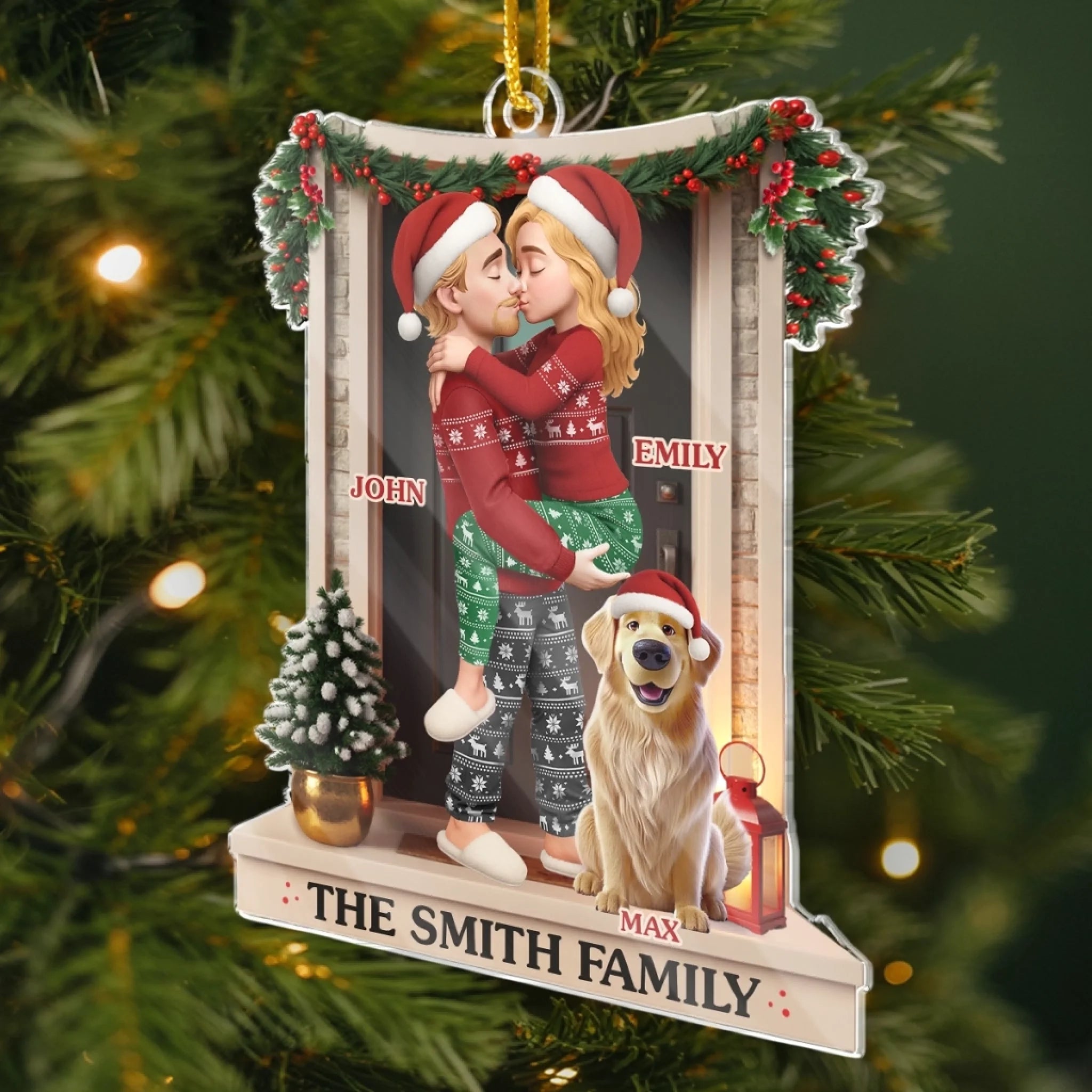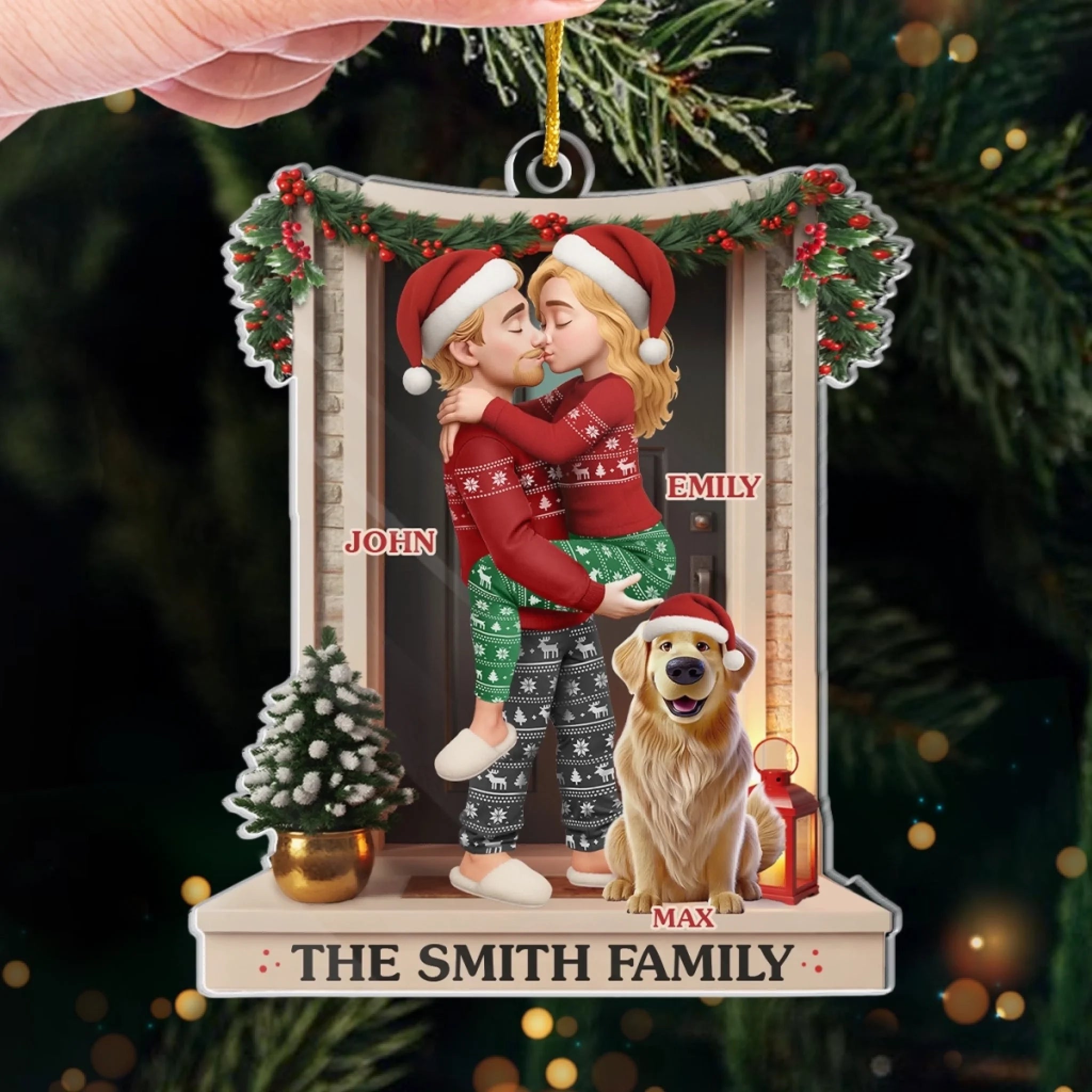 Benutzerdefiniertes Acryl-Ornament – Personalisierte Jubiläums-, Weihnachts- und Hochzeitsgeschenke für Ehemann und Ehefrau, Hundepapa und Hundemama – Liebe an der Haustür