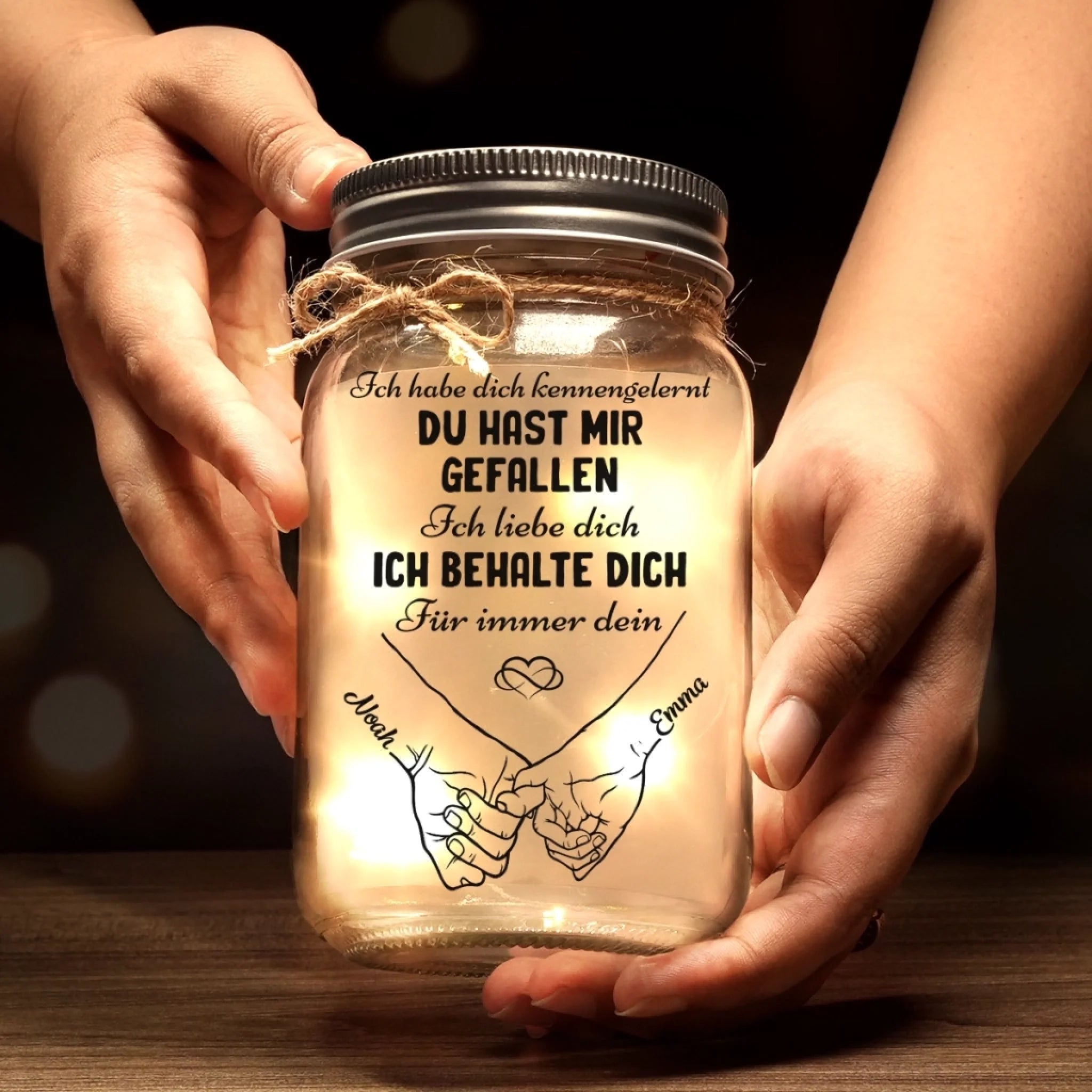 Wenn Sie etwas Neues zu Ihren Räumen hinzufügen möchten, ist diese Mason-Glaskerze die richtige Wahl. Es ist eine bezaubernde Dekoration, die entwickelt wurde, um dem Raum eine warme und gemütliche Atmosphäre zu verleihen. Wenn die Nacht hereinbricht, verwandelt sie den Raum mit einer magischen Note und funkelt wie eine sanfte Welle eines Zauberstabs. Dieses Produkt kann als ideales Geschenk für jede Gelegenheit dienen. Überraschen Sie Ihre Lieben und lassen Sie sie unvergessliche Erinnerungen mit diesem einzigartigen Geschenk genießen.