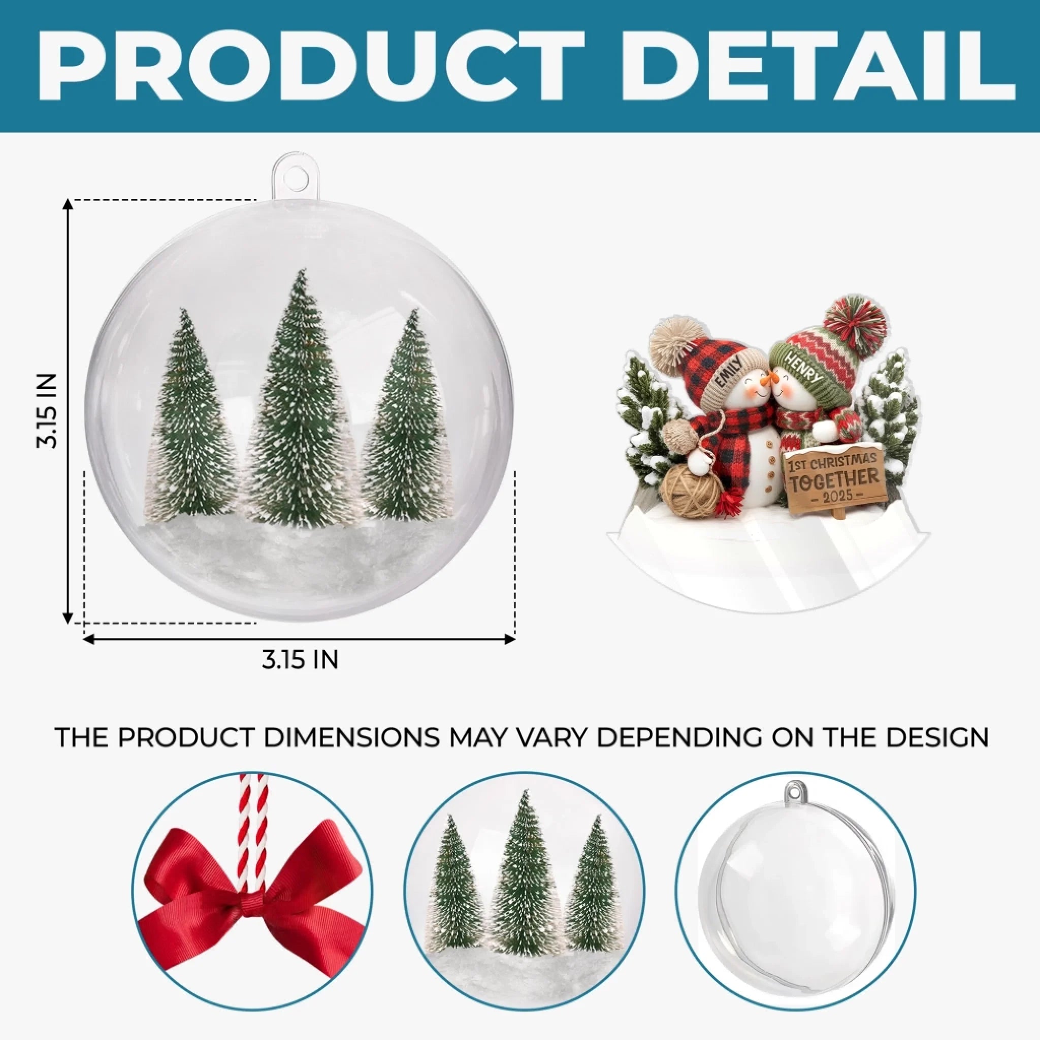 Personalisierter 3D-Acrylkugel-Ornament „Erstes Weihnachten“ – Weihnachts- oder Hochzeitsgeschenk für Ehemann und Ehefrau, für ihn und sie – „Du und ich für immer“