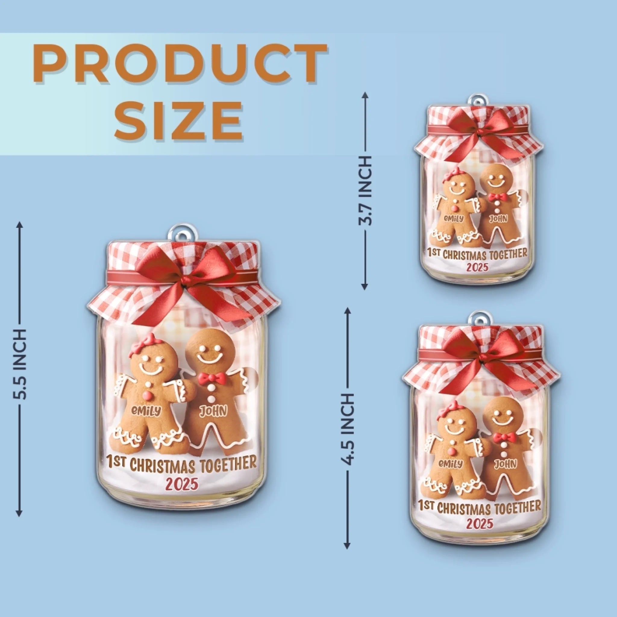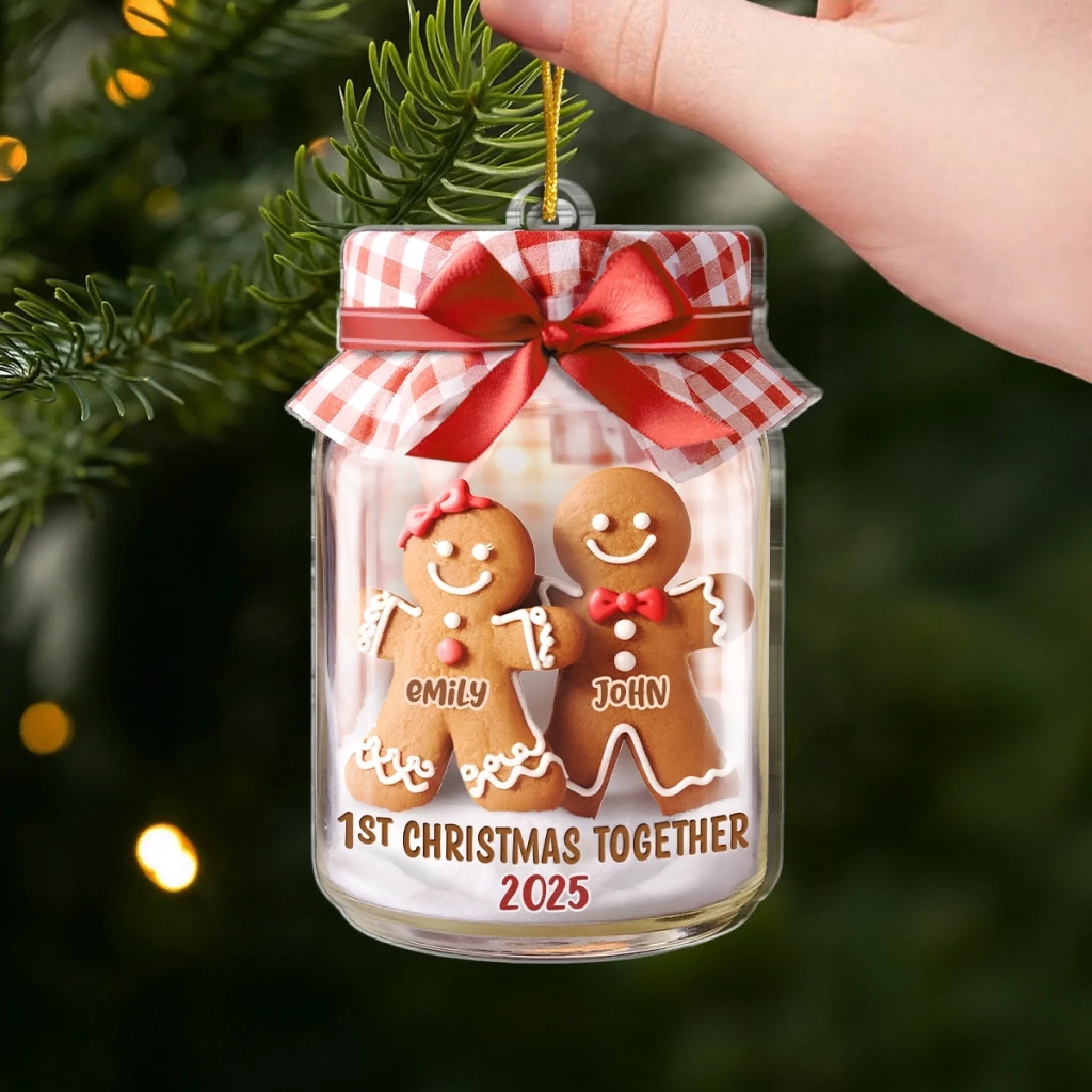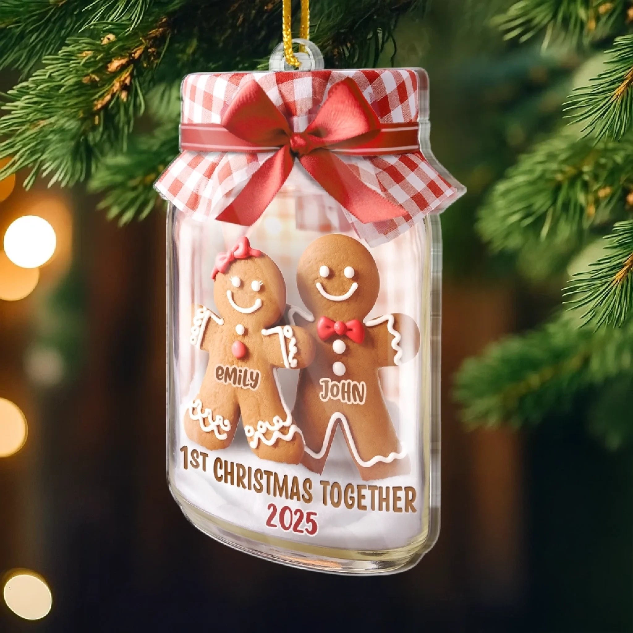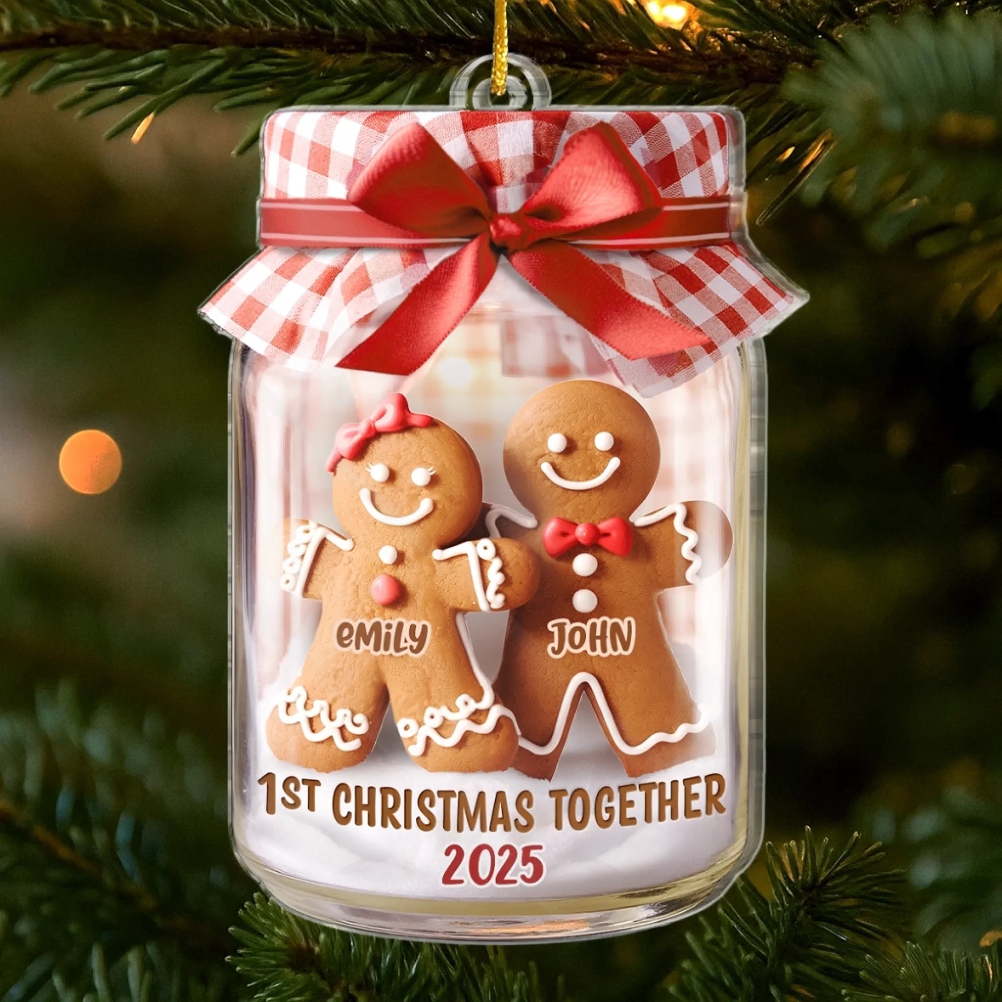 Personalisierter Acryl-Ornament „Erstes Weihnachten“ – Weihnachts- oder Hochzeitsgeschenk für Ehemann und Ehefrau, für ihn und sie – „Lebkuchenherzen vereint“